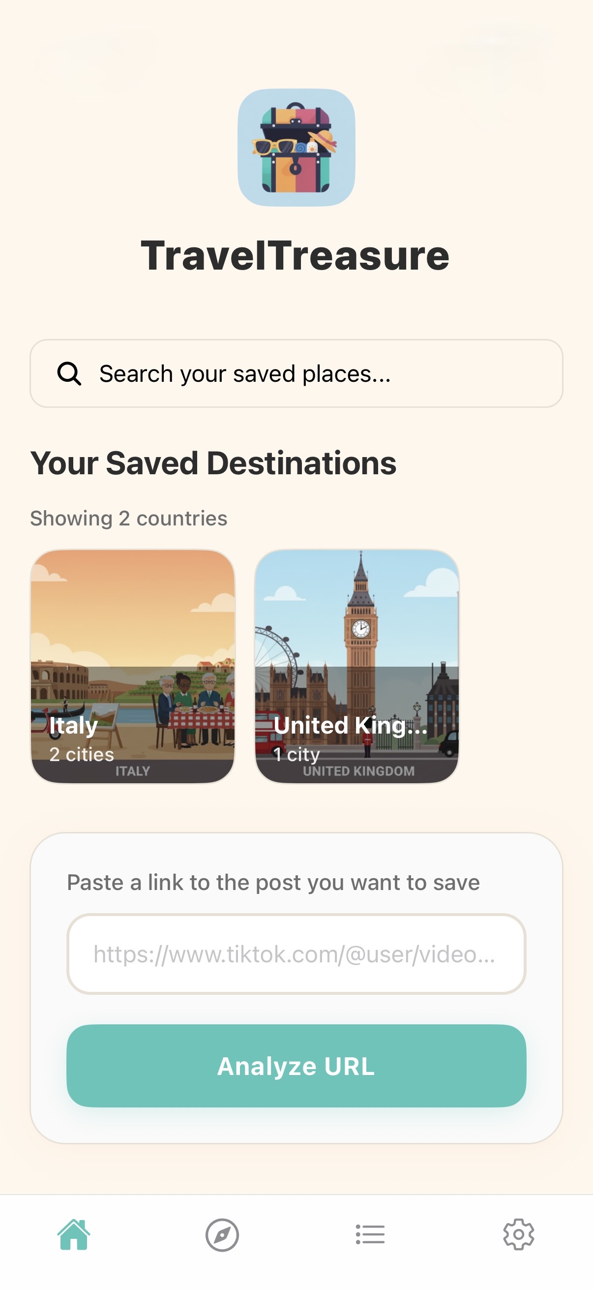 You save TikToks, reels, screenshots, and notes… and then forget where anything is. TravelTreasure keeps all your inspiration in one place - beautifully organized.